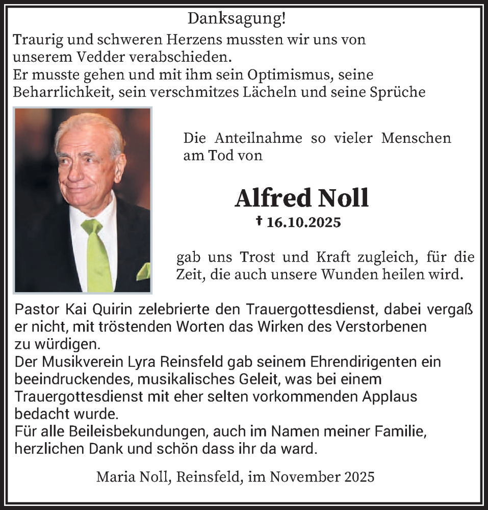 Hier finden Sie alle Traueranzeigen aus der Zeitung, die bisher für Alfred Noll erschienen sind. Weitere Traueranzeigen, die in der Zeitung erscheinen, werden hier ebenfalls aufgelistet