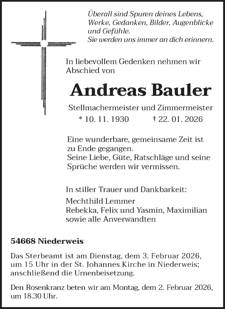 Hier finden Sie alle Traueranzeigen aus der Zeitung, die bisher für Andreas Bauler erschienen sind. Weitere Traueranzeigen, die in der Zeitung erscheinen, werden hier ebenfalls aufgelistet