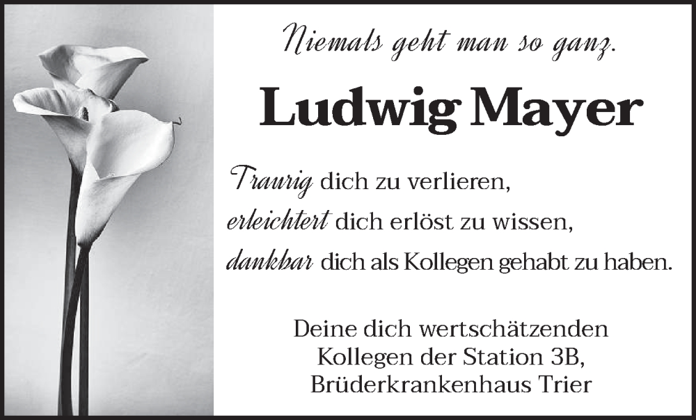 Hier finden Sie alle Traueranzeigen aus der Zeitung, die bisher für Ludwig und Bernadette Mayer erschienen sind. Weitere Traueranzeigen, die in der Zeitung erscheinen, werden hier ebenfalls aufgelistet