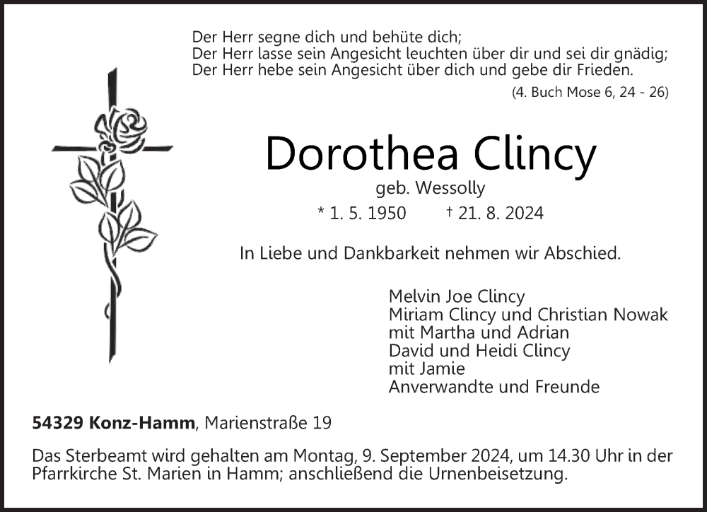 Hier finden Sie alle Traueranzeigen aus der Zeitung, die bisher für Dorothea Clincy erschienen sind. Weitere Traueranzeigen, die in der Zeitung erscheinen, werden hier ebenfalls aufgelistet