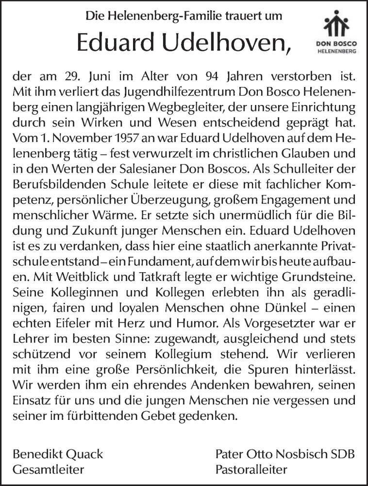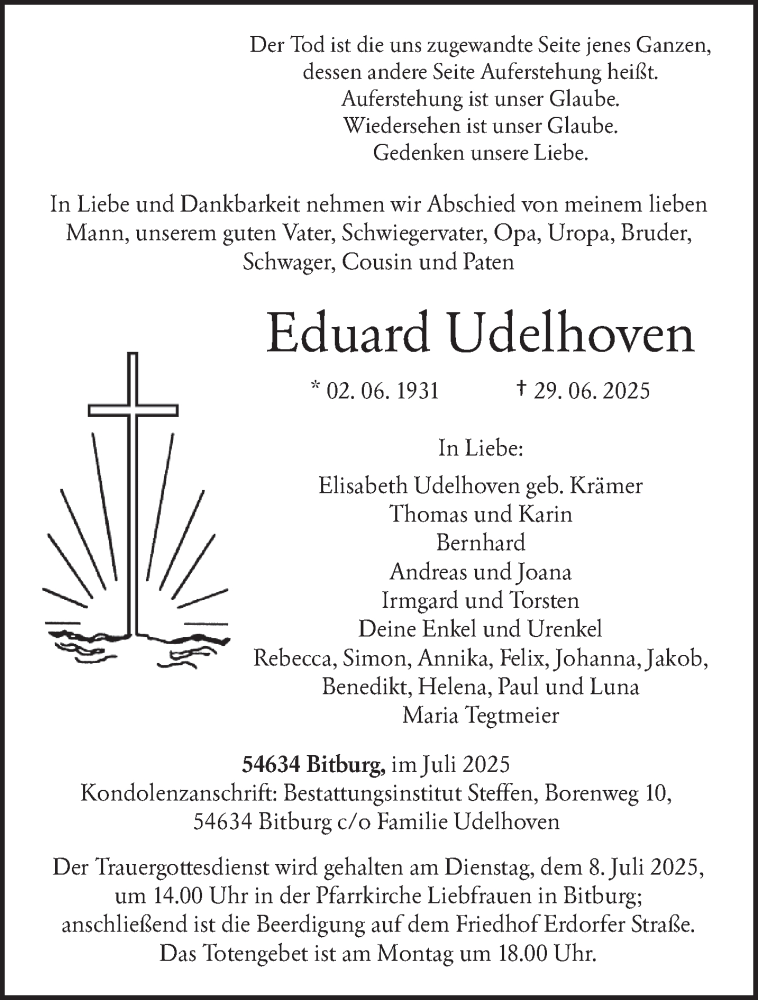 Hier finden Sie alle Traueranzeigen aus der Zeitung, die bisher für Eduard Udelhoven erschienen sind. Weitere Traueranzeigen, die in der Zeitung erscheinen, werden hier ebenfalls aufgelistet