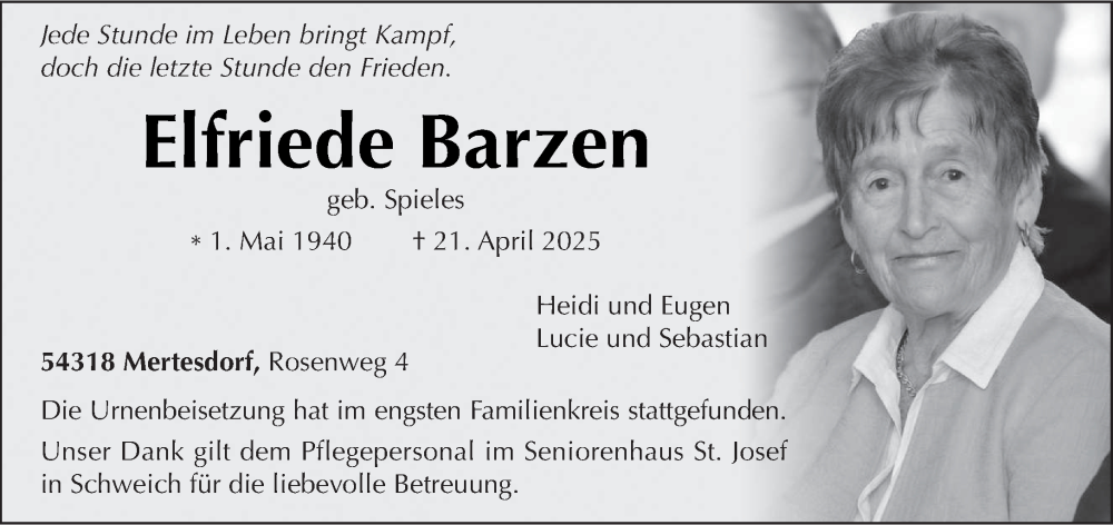 Hier finden Sie alle Traueranzeigen aus der Zeitung, die bisher für Elfriede Barzen erschienen sind. Weitere Traueranzeigen, die in der Zeitung erscheinen, werden hier ebenfalls aufgelistet