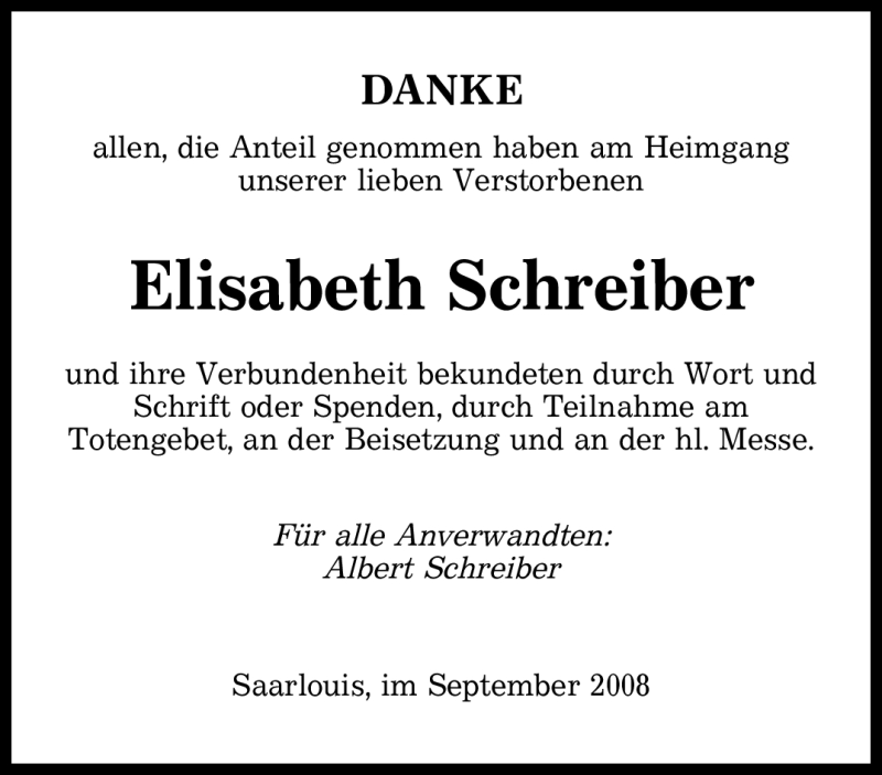 Hier finden Sie alle Traueranzeigen aus der Zeitung, die bisher für ELISABETH SCHREIBER erschienen sind. Weitere Traueranzeigen, die in der Zeitung erscheinen, werden hier ebenfalls aufgelistet