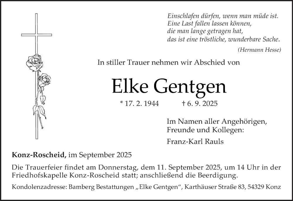 Hier finden Sie alle Traueranzeigen aus der Zeitung, die bisher für Elke Gentgen erschienen sind. Weitere Traueranzeigen, die in der Zeitung erscheinen, werden hier ebenfalls aufgelistet