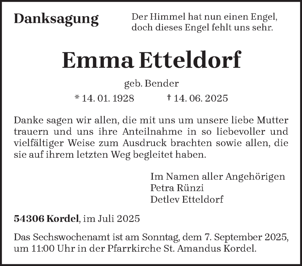 Hier finden Sie alle Traueranzeigen aus der Zeitung, die bisher für Emma Etteldorf erschienen sind. Weitere Traueranzeigen, die in der Zeitung erscheinen, werden hier ebenfalls aufgelistet