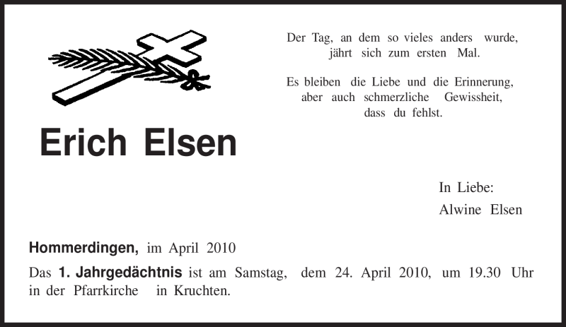 Hier finden Sie alle Traueranzeigen aus der Zeitung, die bisher für Erich Elsen erschienen sind. Weitere Traueranzeigen, die in der Zeitung erscheinen, werden hier ebenfalls aufgelistet