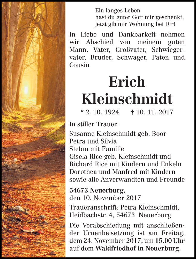 Hier finden Sie alle Traueranzeigen aus der Zeitung, die bisher für Erich Kleinschmidt erschienen sind. Weitere Traueranzeigen, die in der Zeitung erscheinen, werden hier ebenfalls aufgelistet