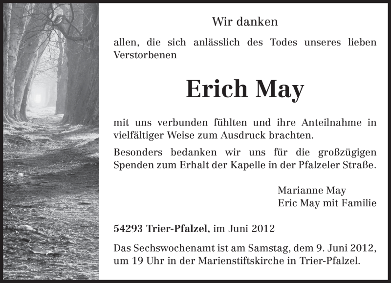 Hier finden Sie alle Traueranzeigen aus der Zeitung, die bisher für Erich May erschienen sind. Weitere Traueranzeigen, die in der Zeitung erscheinen, werden hier ebenfalls aufgelistet