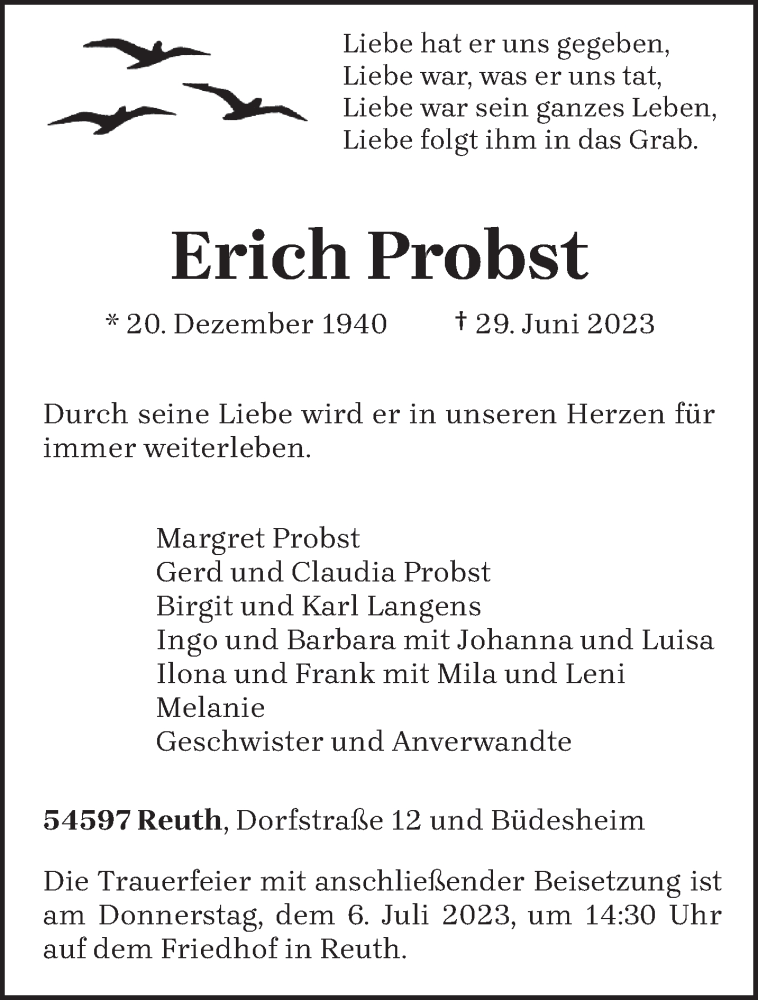 Hier finden Sie alle Traueranzeigen aus der Zeitung, die bisher für Erich Probst erschienen sind. Weitere Traueranzeigen, die in der Zeitung erscheinen, werden hier ebenfalls aufgelistet