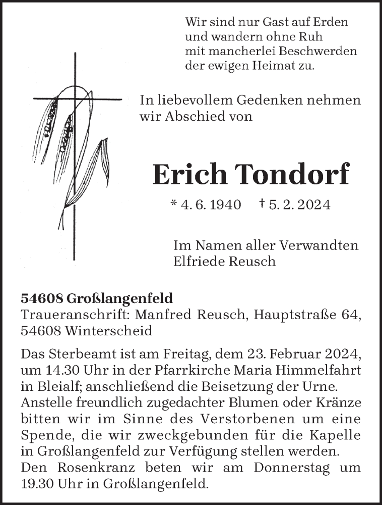 Hier finden Sie alle Traueranzeigen aus der Zeitung, die bisher für Erich Tondorf erschienen sind. Weitere Traueranzeigen, die in der Zeitung erscheinen, werden hier ebenfalls aufgelistet