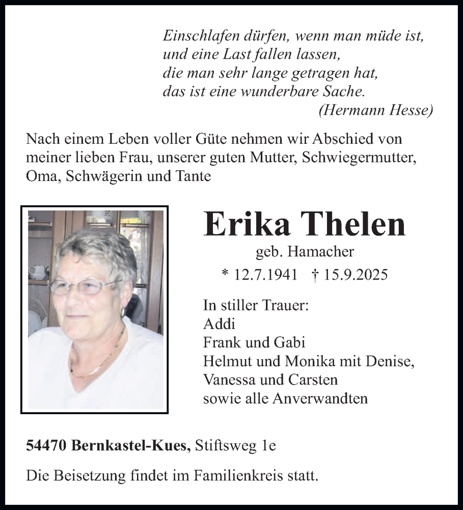 Hier finden Sie alle Traueranzeigen aus der Zeitung, die bisher für Erika Thelen erschienen sind. Weitere Traueranzeigen, die in der Zeitung erscheinen, werden hier ebenfalls aufgelistet