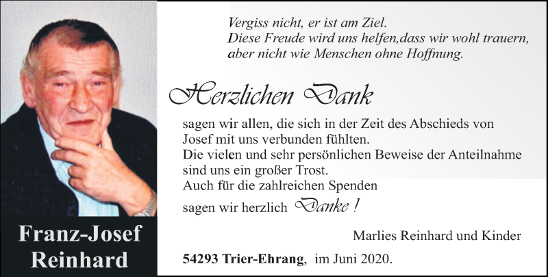 Hier finden Sie alle Traueranzeigen aus der Zeitung, die bisher für Franz-Josef Reinhard erschienen sind. Weitere Traueranzeigen, die in der Zeitung erscheinen, werden hier ebenfalls aufgelistet