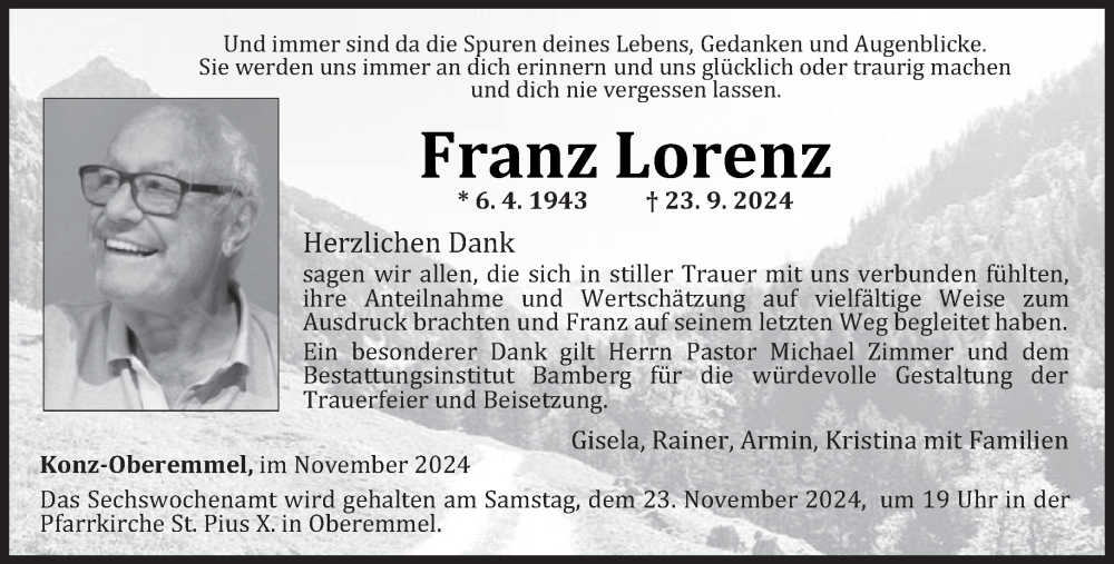 Hier finden Sie alle Traueranzeigen aus der Zeitung, die bisher für Franz Lorenz erschienen sind. Weitere Traueranzeigen, die in der Zeitung erscheinen, werden hier ebenfalls aufgelistet