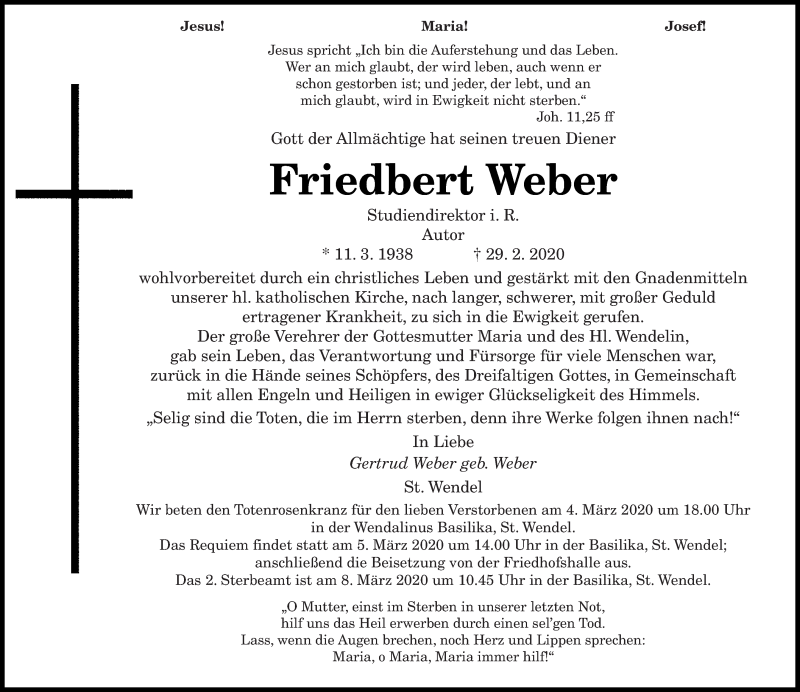 Hier finden Sie alle Traueranzeigen aus der Zeitung, die bisher für Friedbert Weber erschienen sind. Weitere Traueranzeigen, die in der Zeitung erscheinen, werden hier ebenfalls aufgelistet