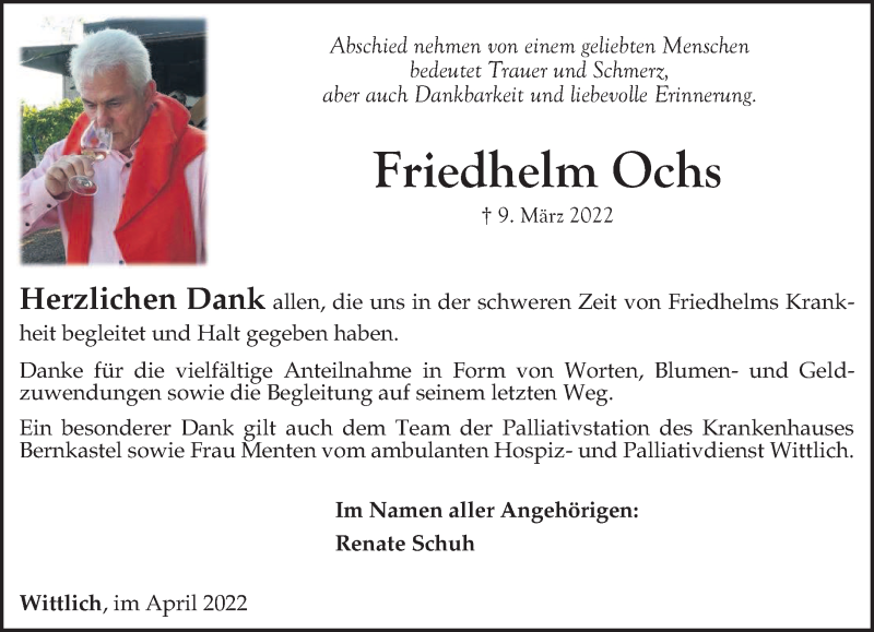 Hier finden Sie alle Traueranzeigen aus der Zeitung, die bisher für Friedhelm Ochs erschienen sind. Weitere Traueranzeigen, die in der Zeitung erscheinen, werden hier ebenfalls aufgelistet