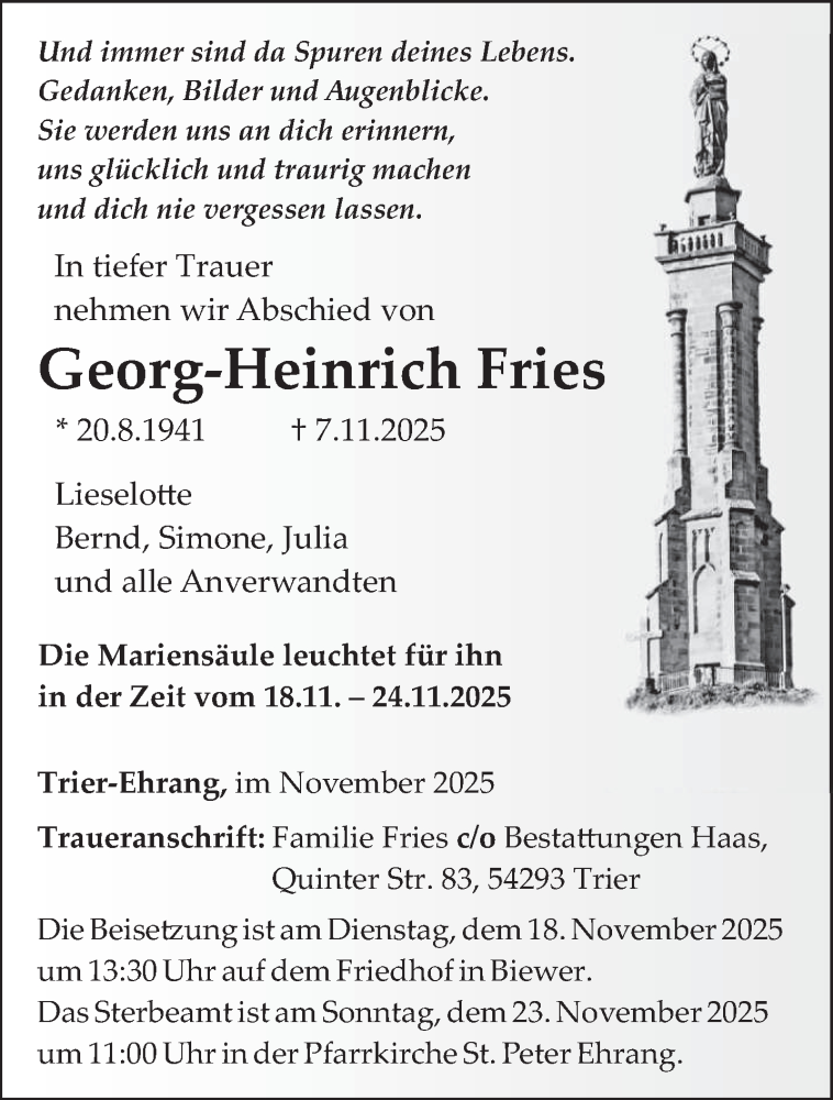 Hier finden Sie alle Traueranzeigen aus der Zeitung, die bisher für Georg-Heinrich Frieß erschienen sind. Weitere Traueranzeigen, die in der Zeitung erscheinen, werden hier ebenfalls aufgelistet