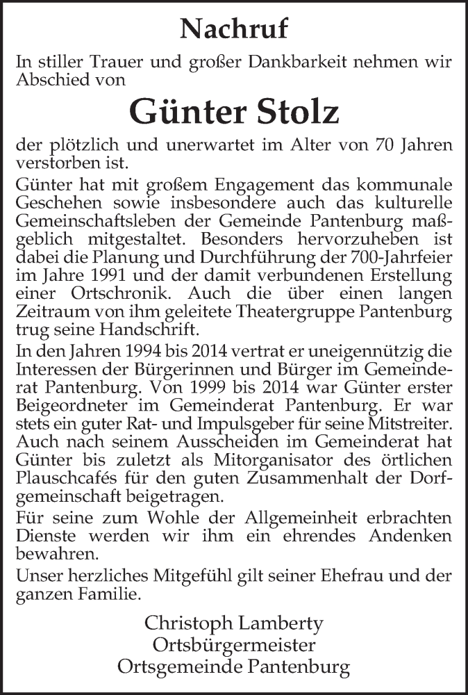 Hier finden Sie alle Traueranzeigen aus der Zeitung, die bisher für Günter Stolz erschienen sind. Weitere Traueranzeigen, die in der Zeitung erscheinen, werden hier ebenfalls aufgelistet