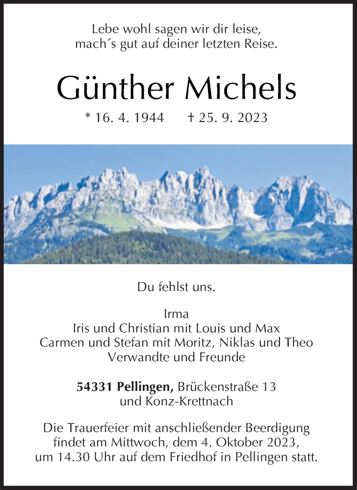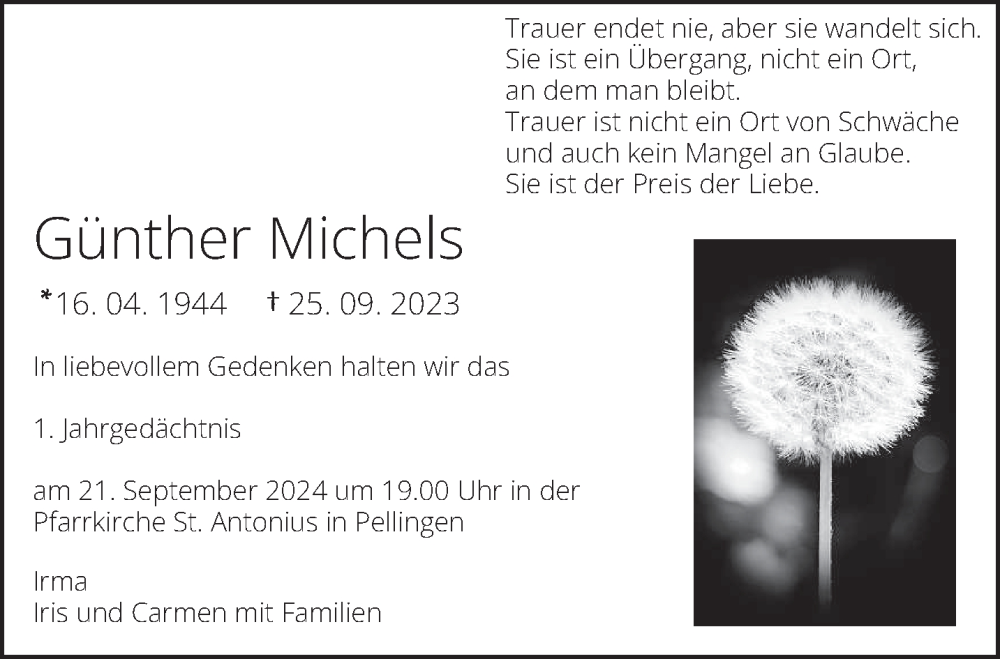 Hier finden Sie alle Traueranzeigen aus der Zeitung, die bisher für Günther Michels erschienen sind. Weitere Traueranzeigen, die in der Zeitung erscheinen, werden hier ebenfalls aufgelistet