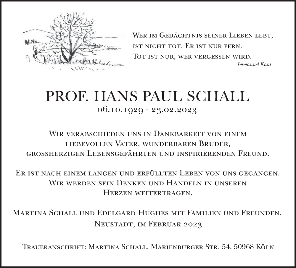 Hier finden Sie alle Traueranzeigen aus der Zeitung, die bisher für Hans Paul Schall erschienen sind. Weitere Traueranzeigen, die in der Zeitung erscheinen, werden hier ebenfalls aufgelistet