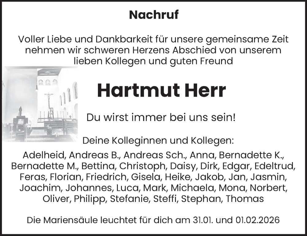 Hier finden Sie alle Traueranzeigen aus der Zeitung, die bisher für Hartmut Herr erschienen sind. Weitere Traueranzeigen, die in der Zeitung erscheinen, werden hier ebenfalls aufgelistet