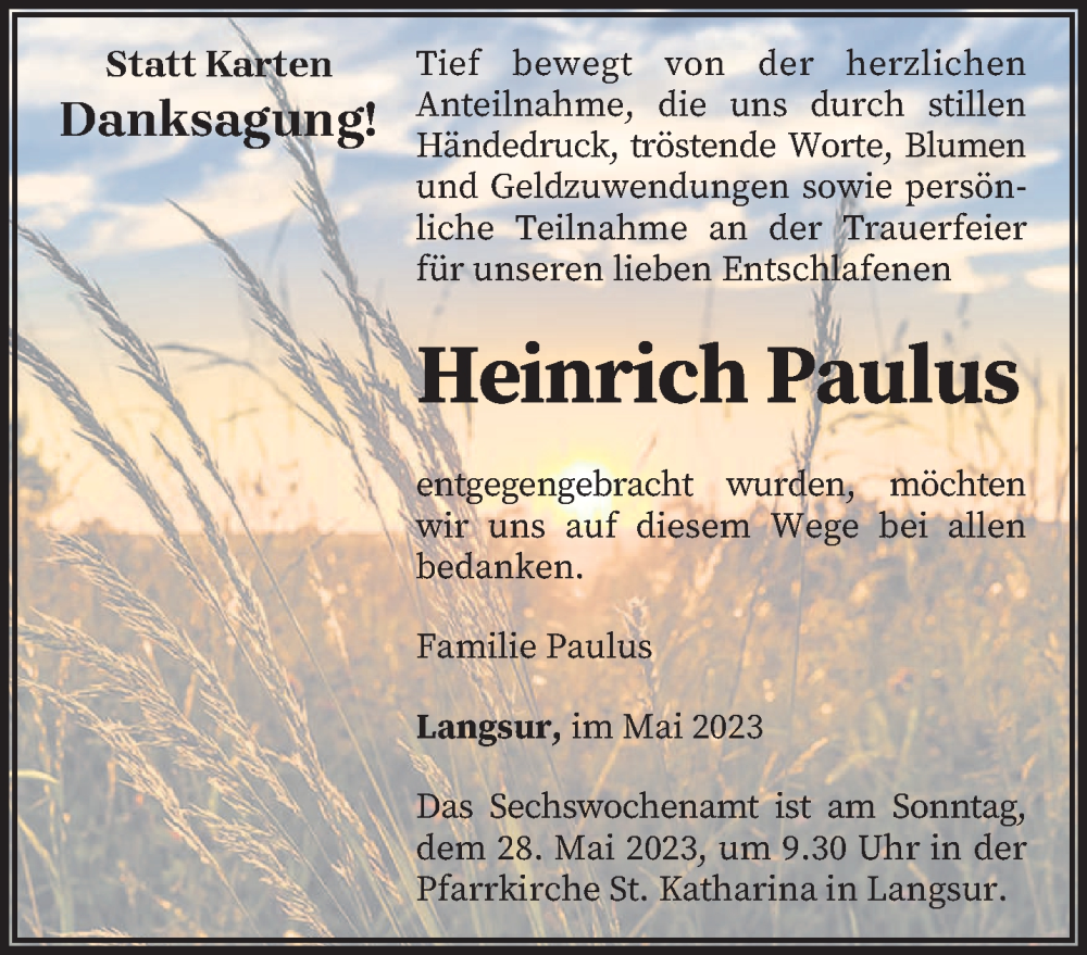 Hier finden Sie alle Traueranzeigen aus der Zeitung, die bisher für Heinrich Paulus erschienen sind. Weitere Traueranzeigen, die in der Zeitung erscheinen, werden hier ebenfalls aufgelistet