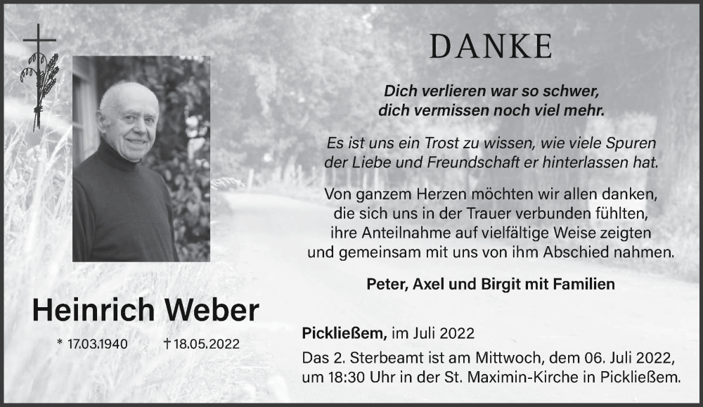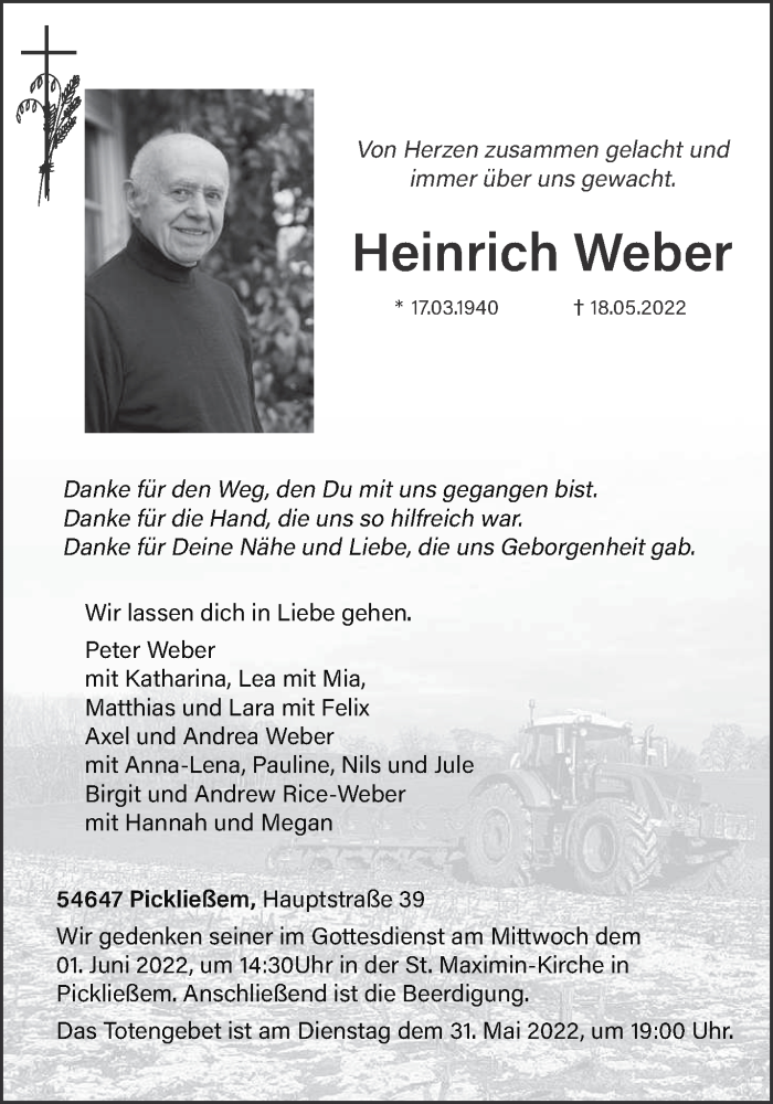 Hier finden Sie alle Traueranzeigen aus der Zeitung, die bisher für Heinrich Weber erschienen sind. Weitere Traueranzeigen, die in der Zeitung erscheinen, werden hier ebenfalls aufgelistet