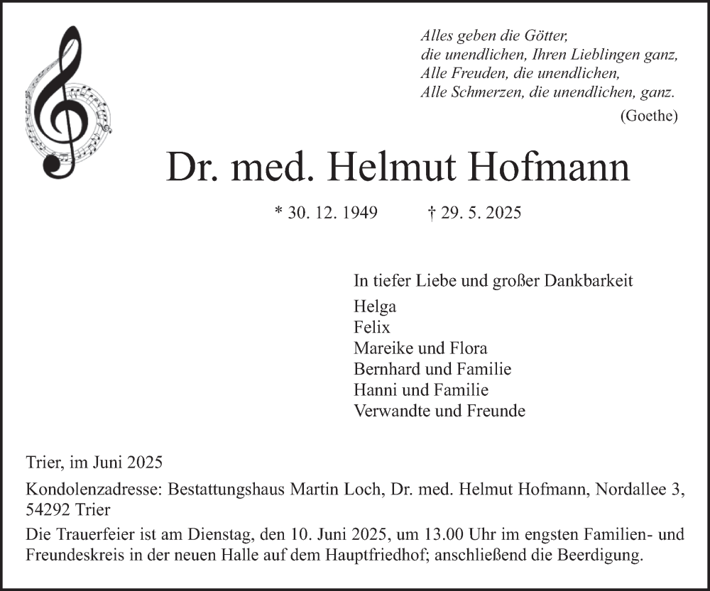 Hier finden Sie alle Traueranzeigen aus der Zeitung, die bisher für Helmut Hofmann erschienen sind. Weitere Traueranzeigen, die in der Zeitung erscheinen, werden hier ebenfalls aufgelistet