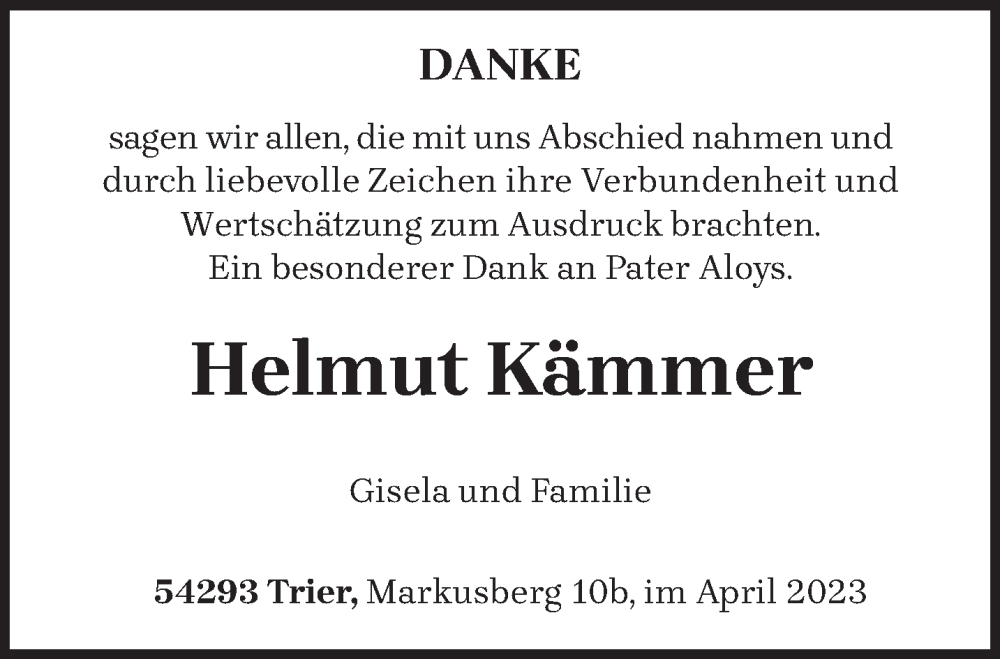 Hier finden Sie alle Traueranzeigen aus der Zeitung, die bisher für Helmut Kämmer erschienen sind. Weitere Traueranzeigen, die in der Zeitung erscheinen, werden hier ebenfalls aufgelistet