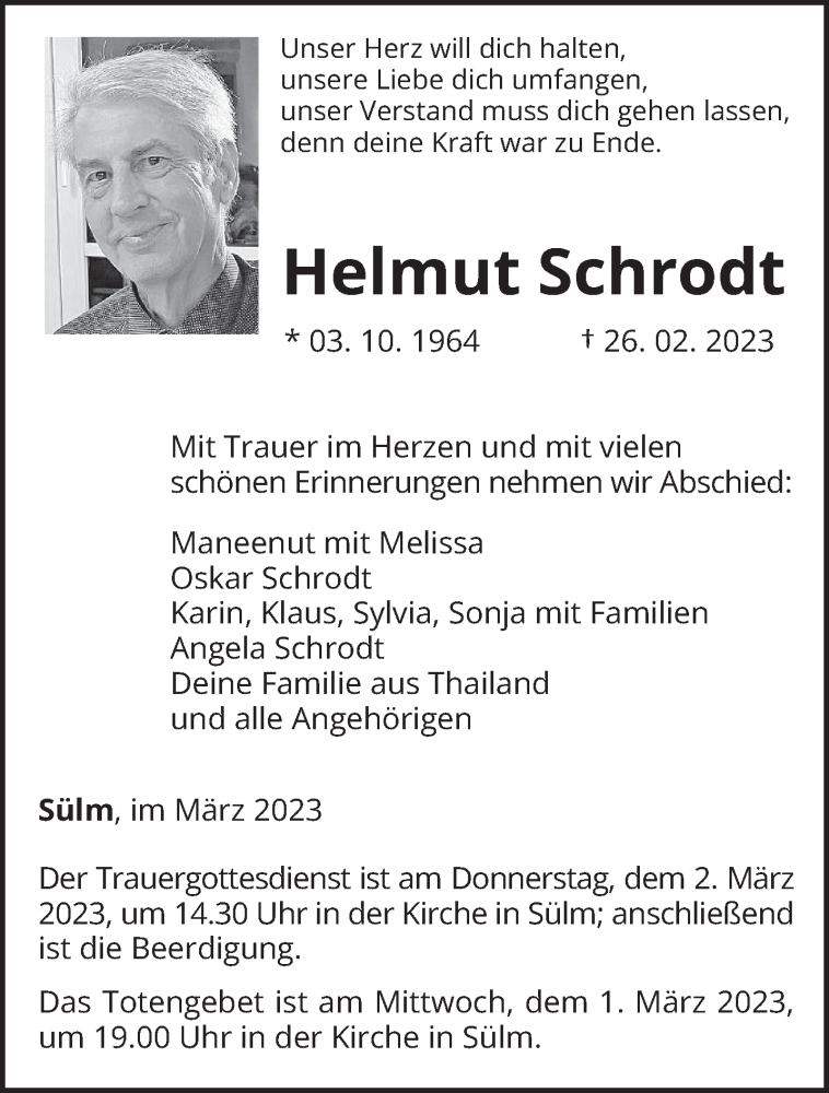Hier finden Sie alle Traueranzeigen aus der Zeitung, die bisher für Helmut Schrodt erschienen sind. Weitere Traueranzeigen, die in der Zeitung erscheinen, werden hier ebenfalls aufgelistet