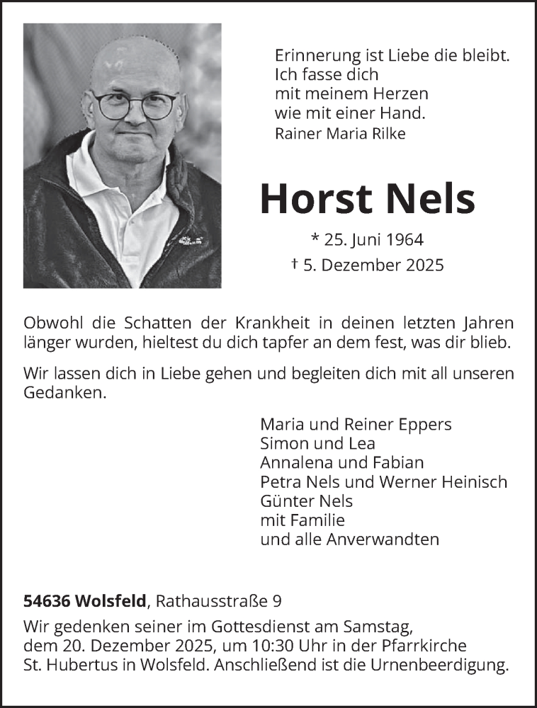 Hier finden Sie alle Traueranzeigen aus der Zeitung, die bisher für Horst Nels erschienen sind. Weitere Traueranzeigen, die in der Zeitung erscheinen, werden hier ebenfalls aufgelistet