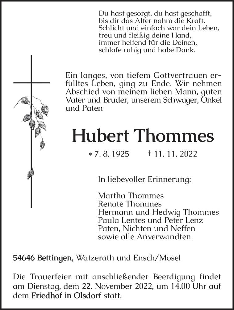 Hier finden Sie alle Traueranzeigen aus der Zeitung, die bisher für Hubert Thommes erschienen sind. Weitere Traueranzeigen, die in der Zeitung erscheinen, werden hier ebenfalls aufgelistet