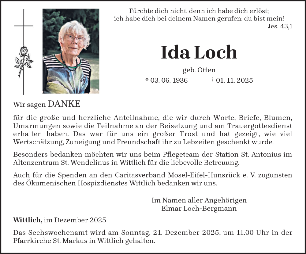Hier finden Sie alle Traueranzeigen aus der Zeitung, die bisher für Ida Loch erschienen sind. Weitere Traueranzeigen, die in der Zeitung erscheinen, werden hier ebenfalls aufgelistet