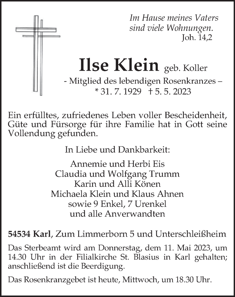 Hier finden Sie alle Traueranzeigen aus der Zeitung, die bisher für Ilse Klein erschienen sind. Weitere Traueranzeigen, die in der Zeitung erscheinen, werden hier ebenfalls aufgelistet