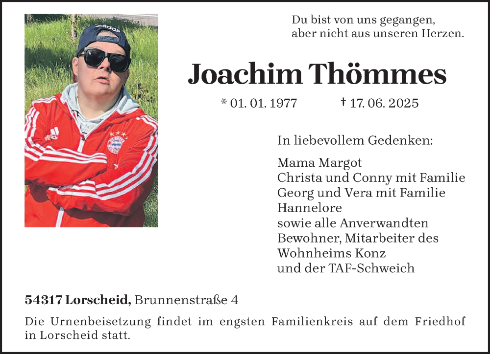 Hier finden Sie alle Traueranzeigen aus der Zeitung, die bisher für Joachim Thömmes erschienen sind. Weitere Traueranzeigen, die in der Zeitung erscheinen, werden hier ebenfalls aufgelistet