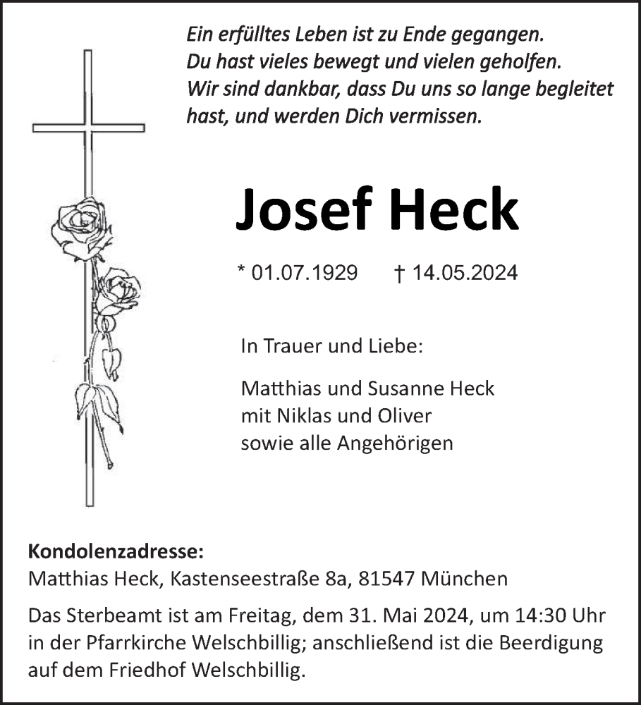 Hier finden Sie alle Traueranzeigen aus der Zeitung, die bisher für Josef Heck erschienen sind. Weitere Traueranzeigen, die in der Zeitung erscheinen, werden hier ebenfalls aufgelistet