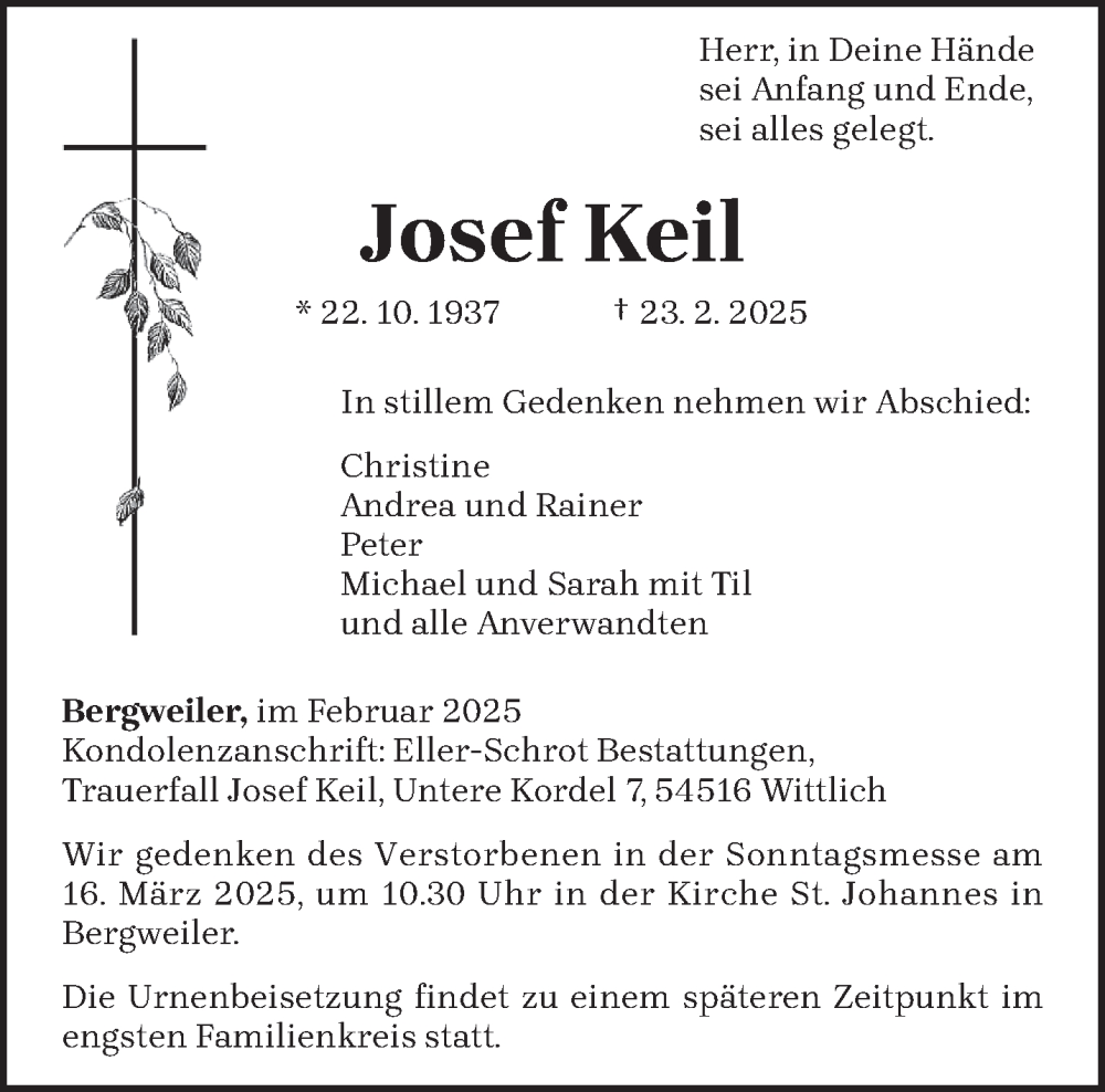 Hier finden Sie alle Traueranzeigen aus der Zeitung, die bisher für Josef Keil erschienen sind. Weitere Traueranzeigen, die in der Zeitung erscheinen, werden hier ebenfalls aufgelistet