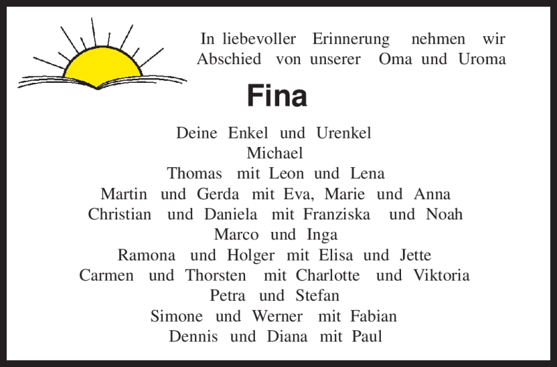 Hier finden Sie alle Traueranzeigen aus der Zeitung, die bisher für Josefine Schröder erschienen sind. Weitere Traueranzeigen, die in der Zeitung erscheinen, werden hier ebenfalls aufgelistet
