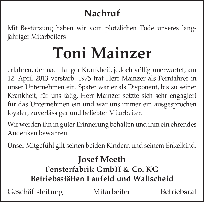 Hier finden Sie alle Traueranzeigen aus der Zeitung, die bisher für Karl-Josef Benner erschienen sind. Weitere Traueranzeigen, die in der Zeitung erscheinen, werden hier ebenfalls aufgelistet