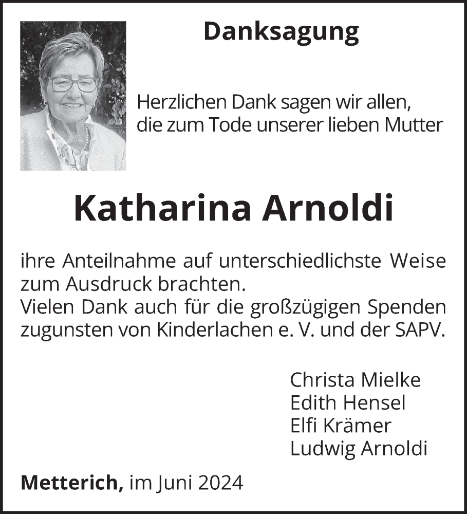 Hier finden Sie alle Traueranzeigen aus der Zeitung, die bisher für Katharina Arnoldi erschienen sind. Weitere Traueranzeigen, die in der Zeitung erscheinen, werden hier ebenfalls aufgelistet