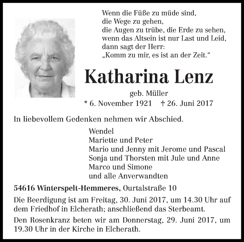 Hier finden Sie alle Traueranzeigen aus der Zeitung, die bisher für Katharina Lenz erschienen sind. Weitere Traueranzeigen, die in der Zeitung erscheinen, werden hier ebenfalls aufgelistet