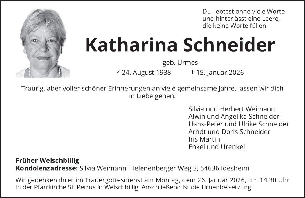 Hier finden Sie alle Traueranzeigen aus der Zeitung, die bisher für Katharina Schneider erschienen sind. Weitere Traueranzeigen, die in der Zeitung erscheinen, werden hier ebenfalls aufgelistet