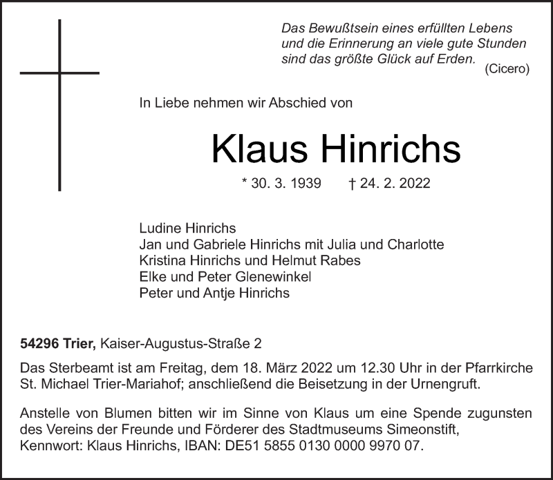 Hier finden Sie alle Traueranzeigen aus der Zeitung, die bisher für Klaus Hinrichs erschienen sind. Weitere Traueranzeigen, die in der Zeitung erscheinen, werden hier ebenfalls aufgelistet