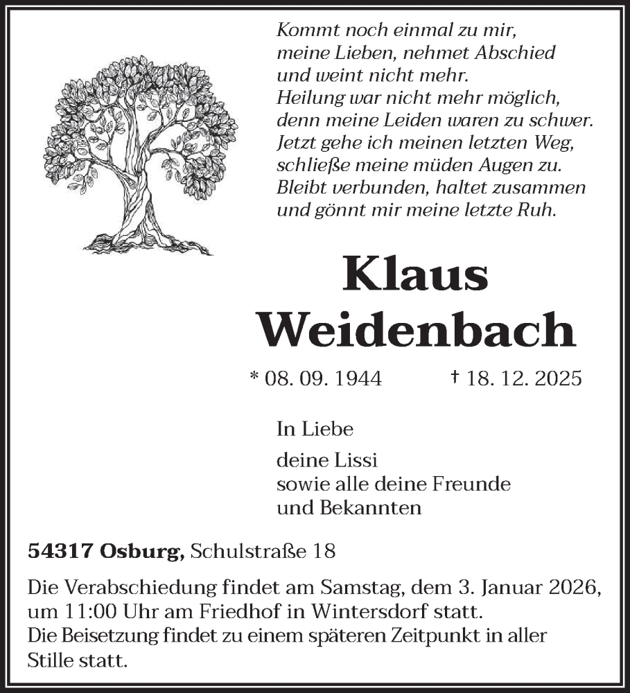 Hier finden Sie alle Traueranzeigen aus der Zeitung, die bisher für Klaus Weidenbach erschienen sind. Weitere Traueranzeigen, die in der Zeitung erscheinen, werden hier ebenfalls aufgelistet