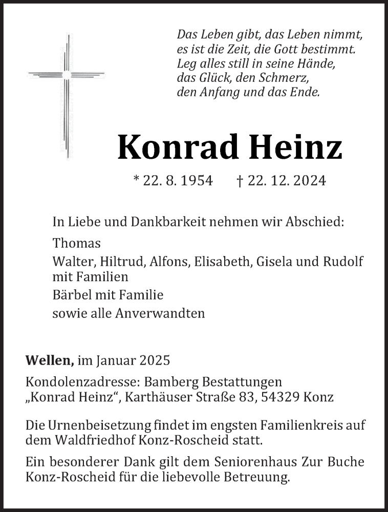 Hier finden Sie alle Traueranzeigen aus der Zeitung, die bisher für Konrad Heinz erschienen sind. Weitere Traueranzeigen, die in der Zeitung erscheinen, werden hier ebenfalls aufgelistet