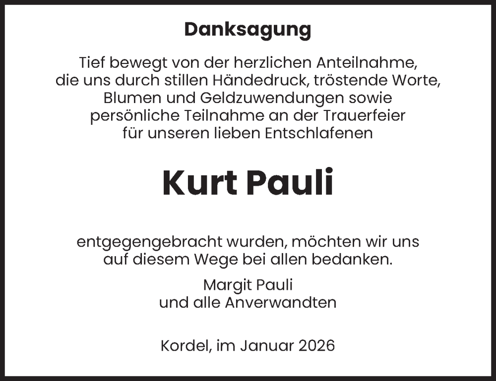 Hier finden Sie alle Traueranzeigen aus der Zeitung, die bisher für Kurt Pauli erschienen sind. Weitere Traueranzeigen, die in der Zeitung erscheinen, werden hier ebenfalls aufgelistet