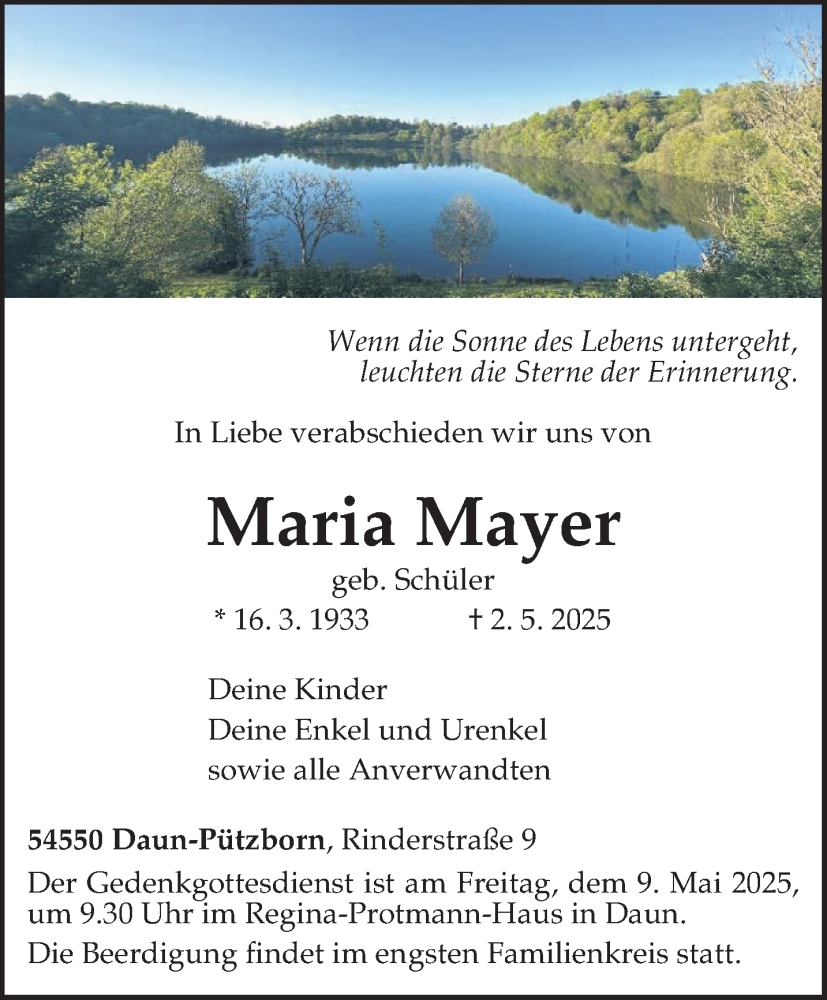 Hier finden Sie alle Traueranzeigen aus der Zeitung, die bisher für Maria Mayer erschienen sind. Weitere Traueranzeigen, die in der Zeitung erscheinen, werden hier ebenfalls aufgelistet