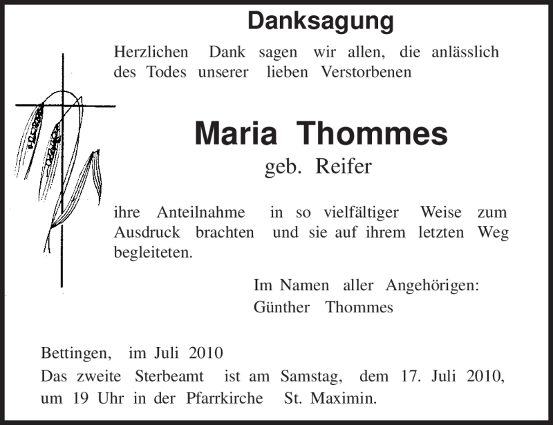 Hier finden Sie alle Traueranzeigen aus der Zeitung, die bisher für Maria Thommes erschienen sind. Weitere Traueranzeigen, die in der Zeitung erscheinen, werden hier ebenfalls aufgelistet
