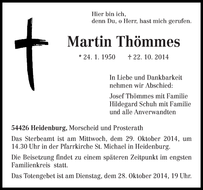 Hier finden Sie alle Traueranzeigen aus der Zeitung, die bisher für Martin Thömmes erschienen sind. Weitere Traueranzeigen, die in der Zeitung erscheinen, werden hier ebenfalls aufgelistet