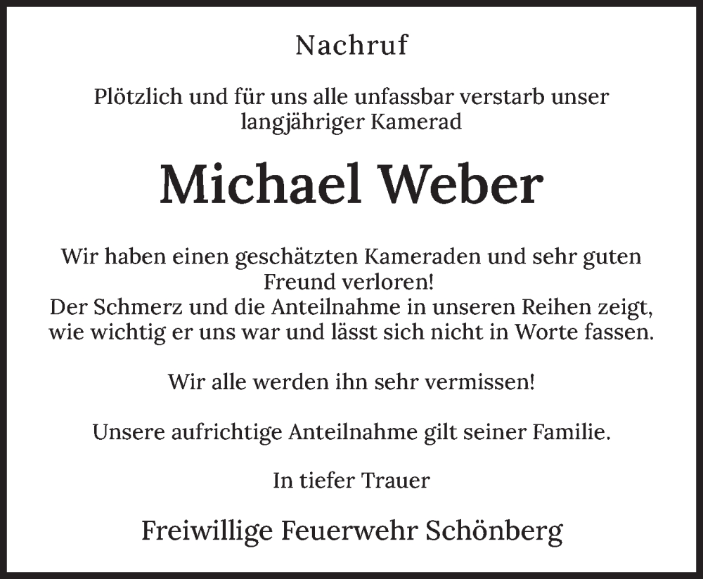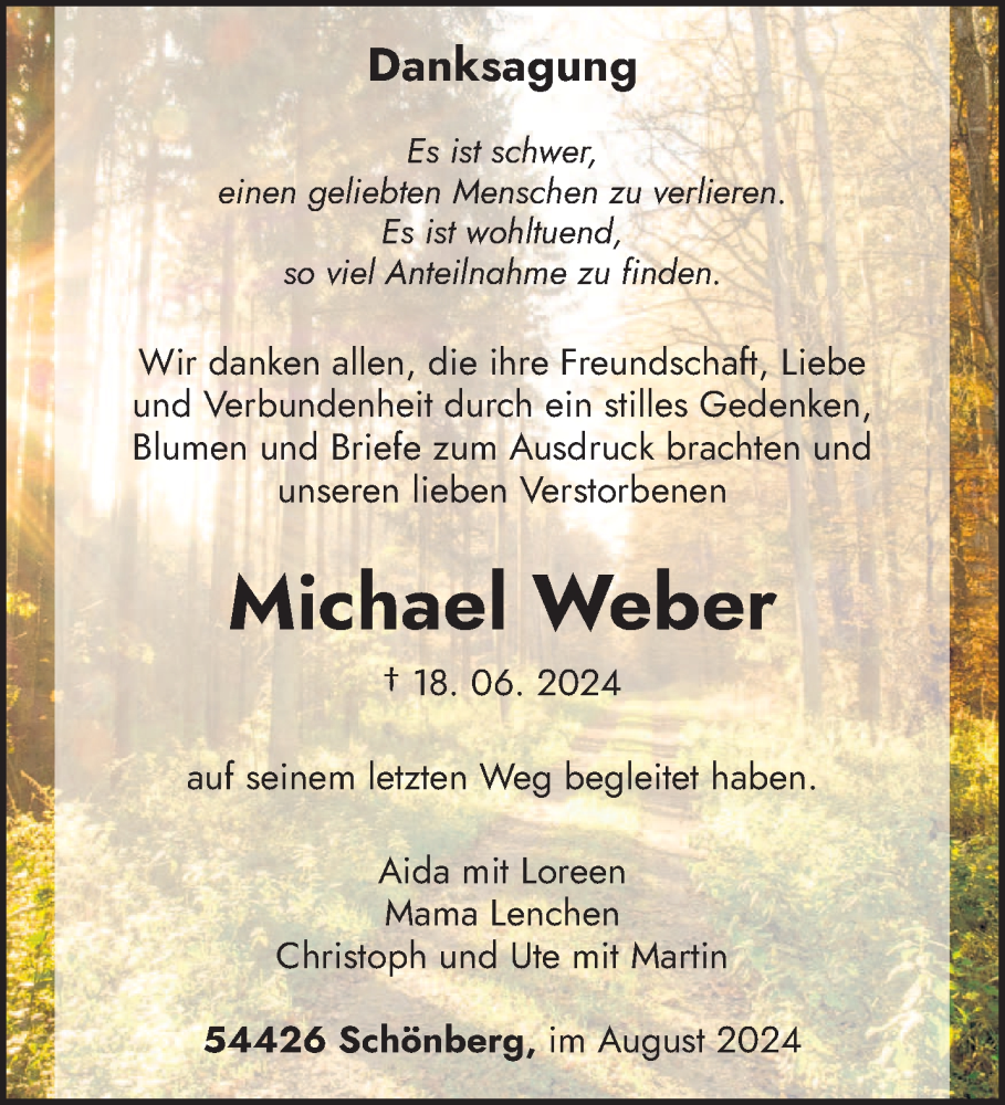 Hier finden Sie alle Traueranzeigen aus der Zeitung, die bisher für Michael Weber erschienen sind. Weitere Traueranzeigen, die in der Zeitung erscheinen, werden hier ebenfalls aufgelistet