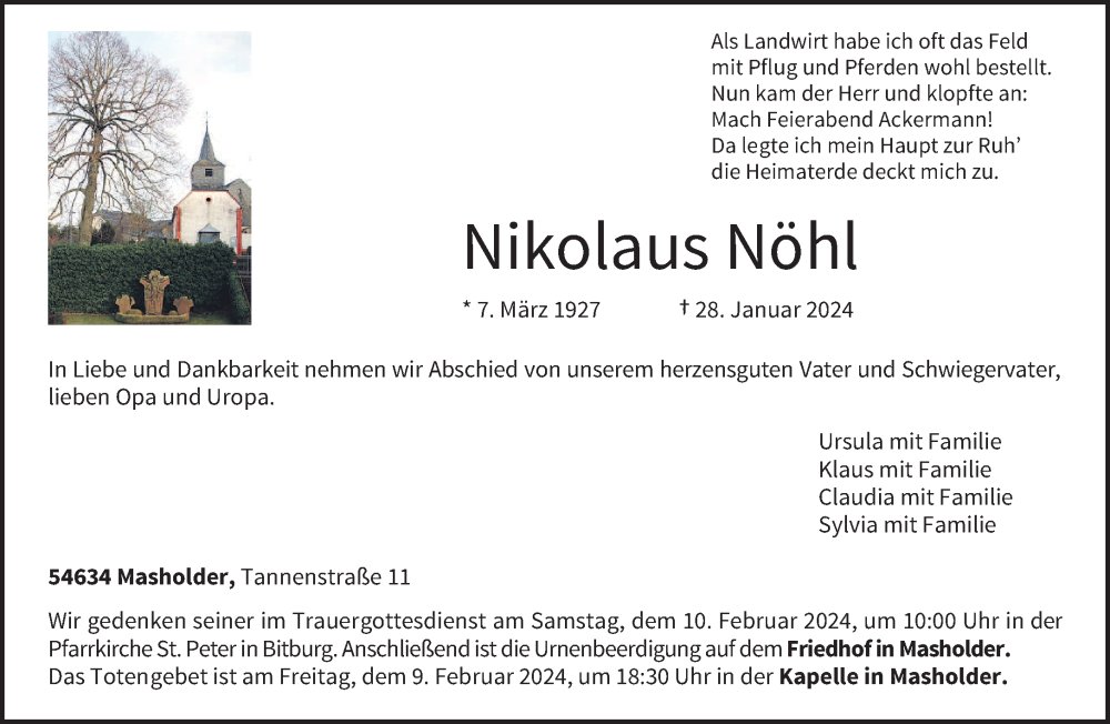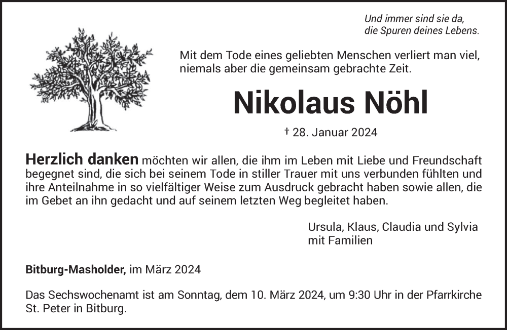 Hier finden Sie alle Traueranzeigen aus der Zeitung, die bisher für Nikolaus Nöhl erschienen sind. Weitere Traueranzeigen, die in der Zeitung erscheinen, werden hier ebenfalls aufgelistet